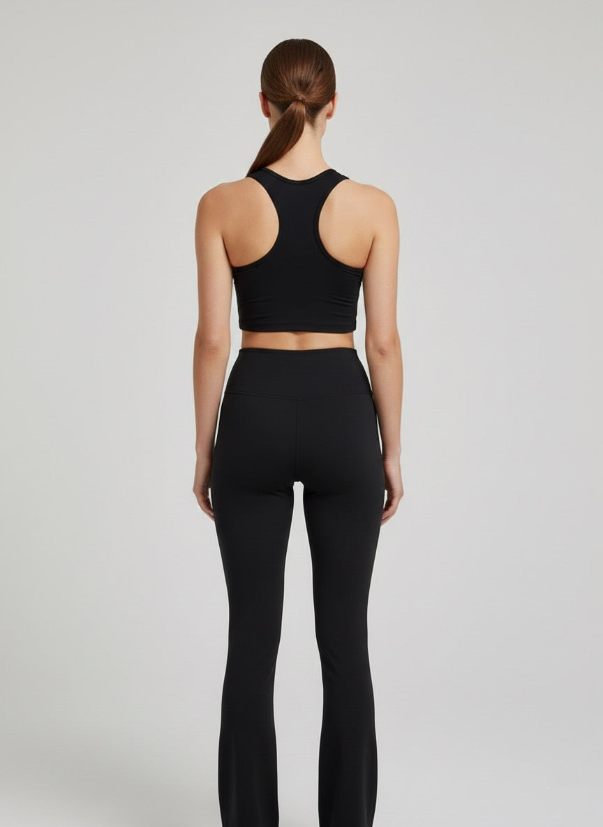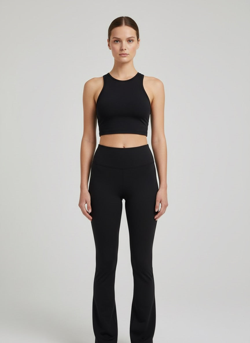 Der elastische, leichte Stoff bewegt sich mit deinem Körper, während das schlichte schwarze Design sich mühelos mit Leggings, Shorts oder Jogginghosen kombinieren lässt. Ideal für Training, Freizeit, Layer-Looks oder Reisen – ein zeitloses Must-have für jeden Tag.